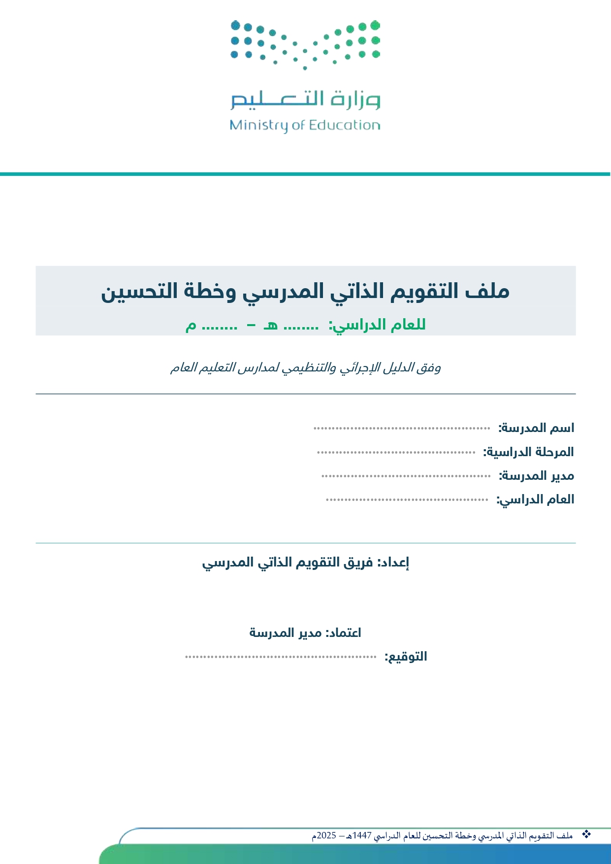 ملف التقويم الذاتي المدرسي وخطة التحسين 1447هـ – 2025م | جاهز للتعديل والطباعةالجودة والتقويم المدرسي, سجلات وملاحق التعليم العام