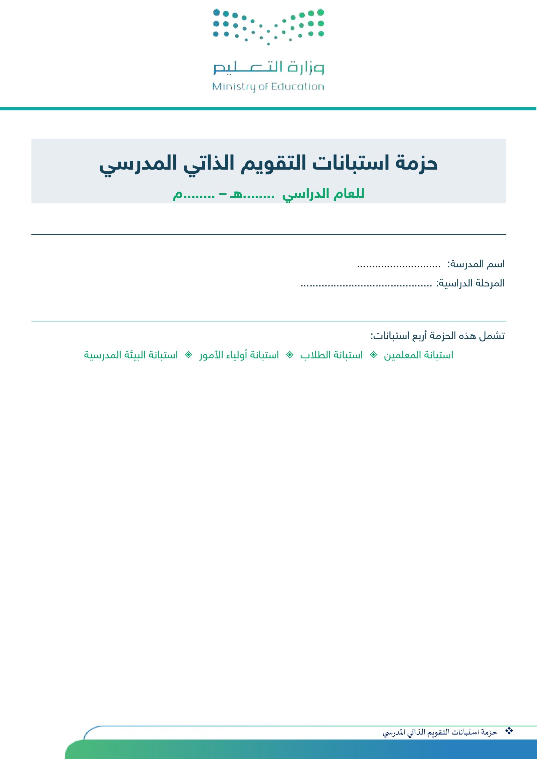 حقيبة استبانات التقويم الذاتي المدرسي مع أداة التحليل الآلي للنتائج 1447هـالجودة والتقويم المدرسي, سجلات وملاحق التعليم العام