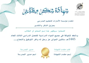 شهادة ( شكر وتقدير – تفوق – تهنئة – تخرج – حضور دورة) رسمية