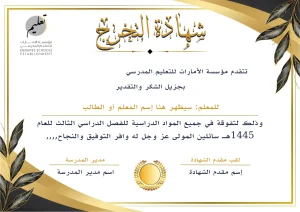 شهادة ( شكر وتقدير – تفوق – تهنئة – تخرج – حضور دورة) رسمية